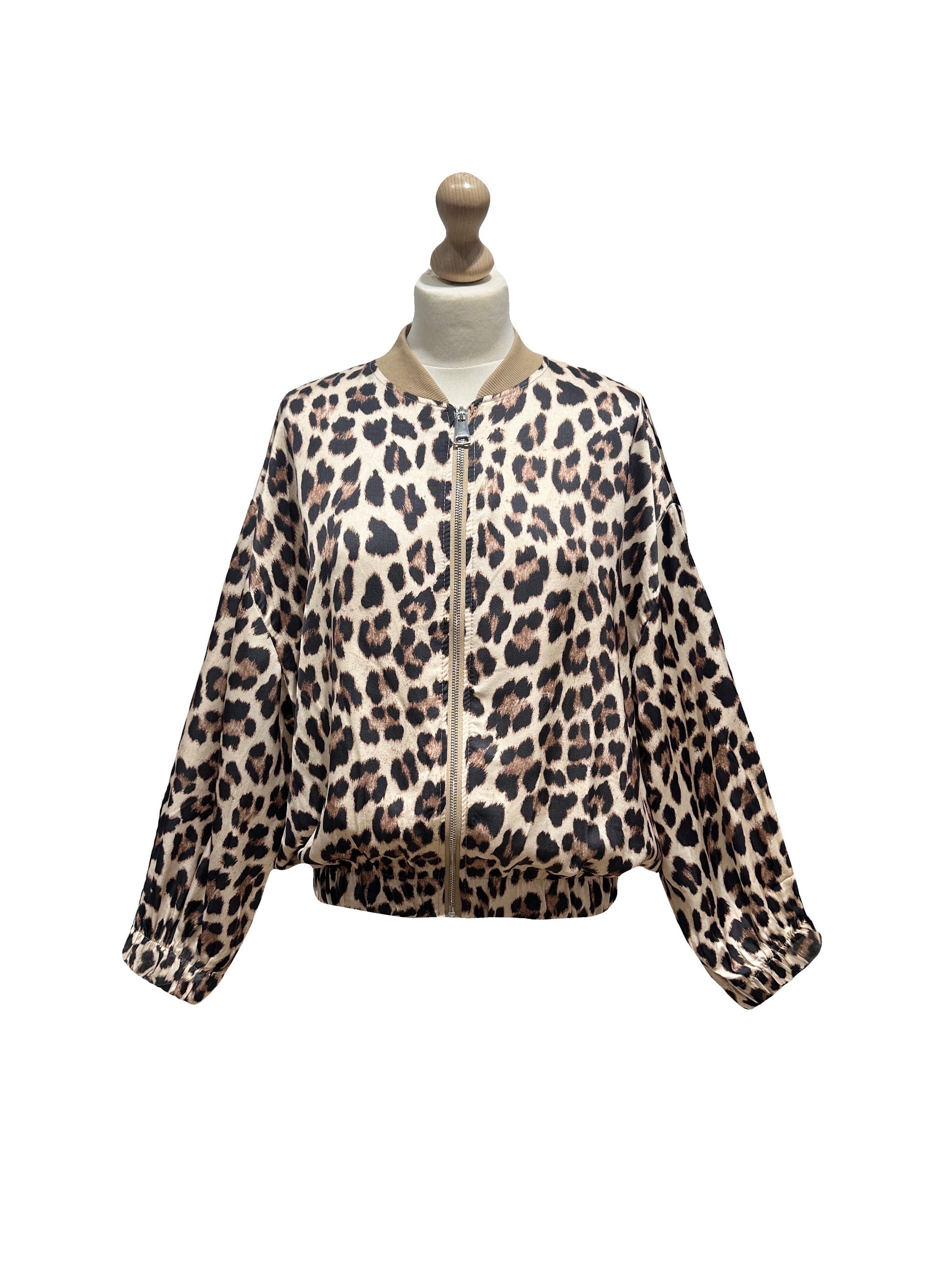 Diese elegante Blouson Jacke Leo Beige besteht aus 20% Seide und 80% Viscose, was für einen angenehmen und leicht fließenden Stoff sorgt. Sie ist in den Größen 36-42 tragbar und bietet somit eine perfekte Passform für verschiedene Körpertypen. Mit ihrem zeitlosen Leo-Muster verleiht sie jedem Outfit eine trendige Note.