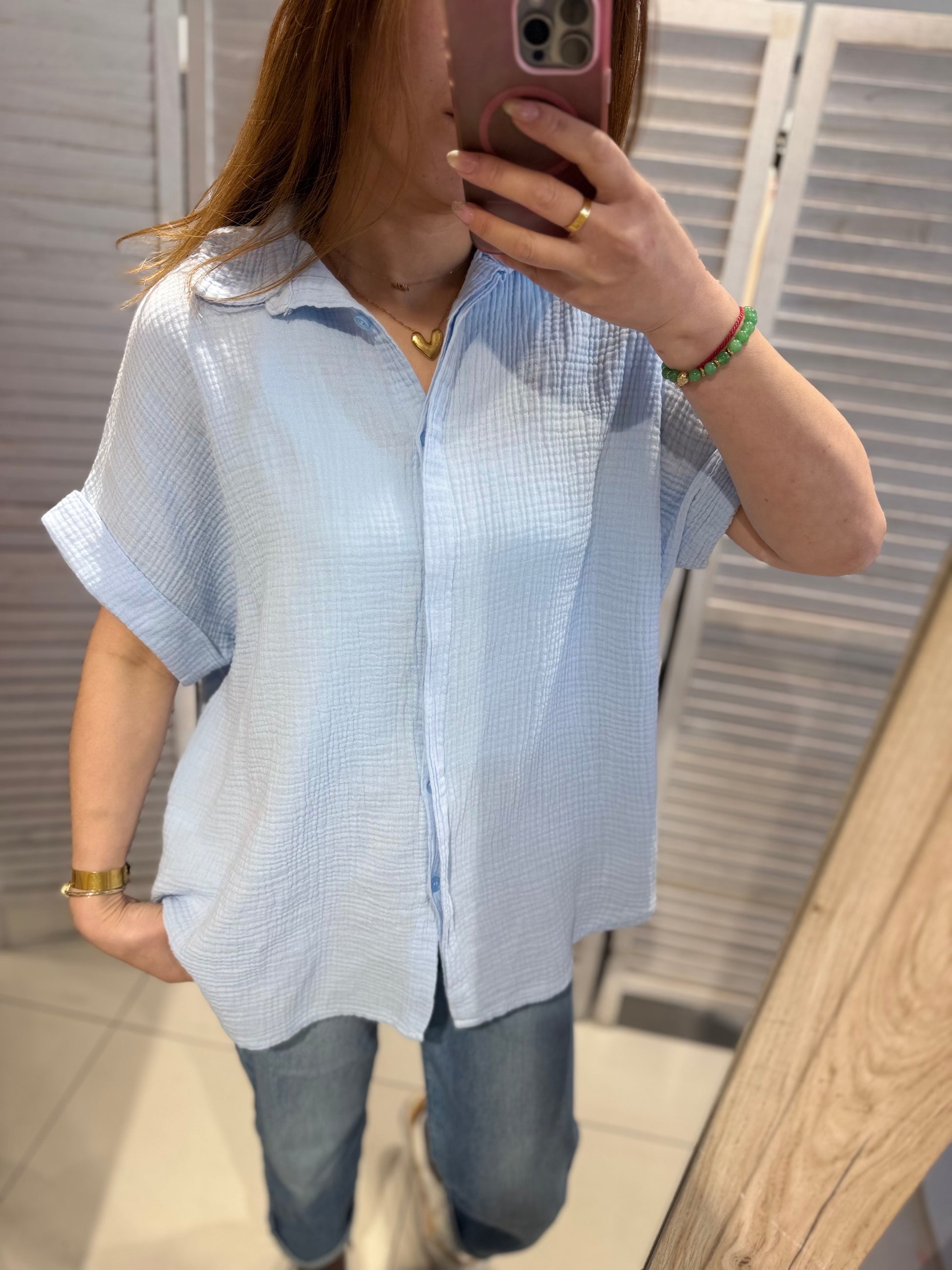 Diese hellblaue Bluse aus 100% Baumwolle ist tragbar für Größen 36-46 und bietet einen angenehmen Tragekomfort. Eine perfekte Wahl für alle, die auf Naturfasern und eine bequeme Passform Wert legen. Idealer Begleiter für jeden Tag.