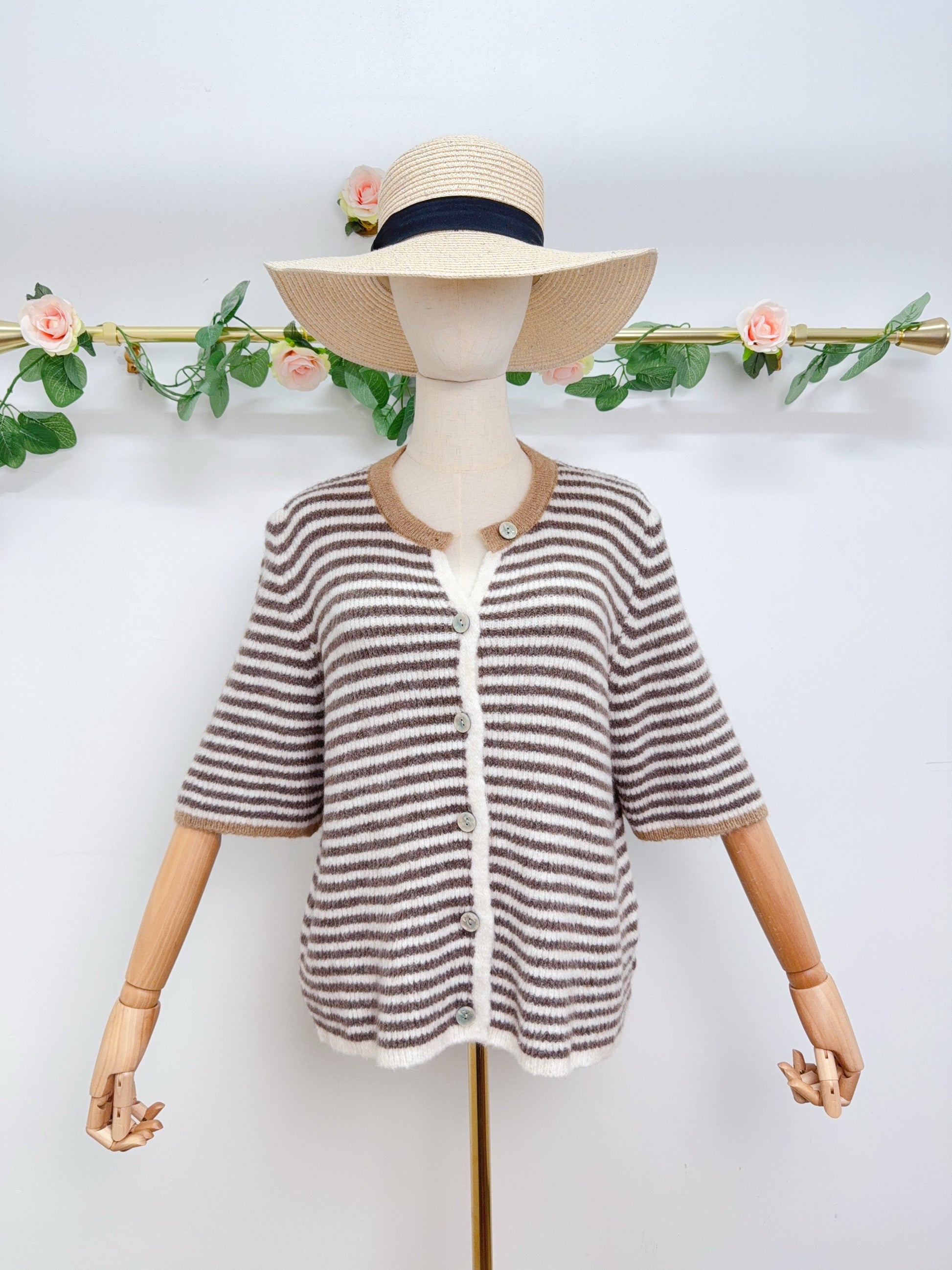 Dieser gestreifte Cardigan besteht aus einer hochwertigen Mischung aus Acryl, Polyamid, Wolle, Viskose und Polyester. Mit einem Anteil von 60% Acryl und je 14% Polyamide und Wolle ist er weich und warm. Die zusätzlichen 8% Viskose und 10% Polyester geben ihm einen schimmernden Glanz. Perfekt für kühle Abende oder als modisches Highlight im Alltag.
