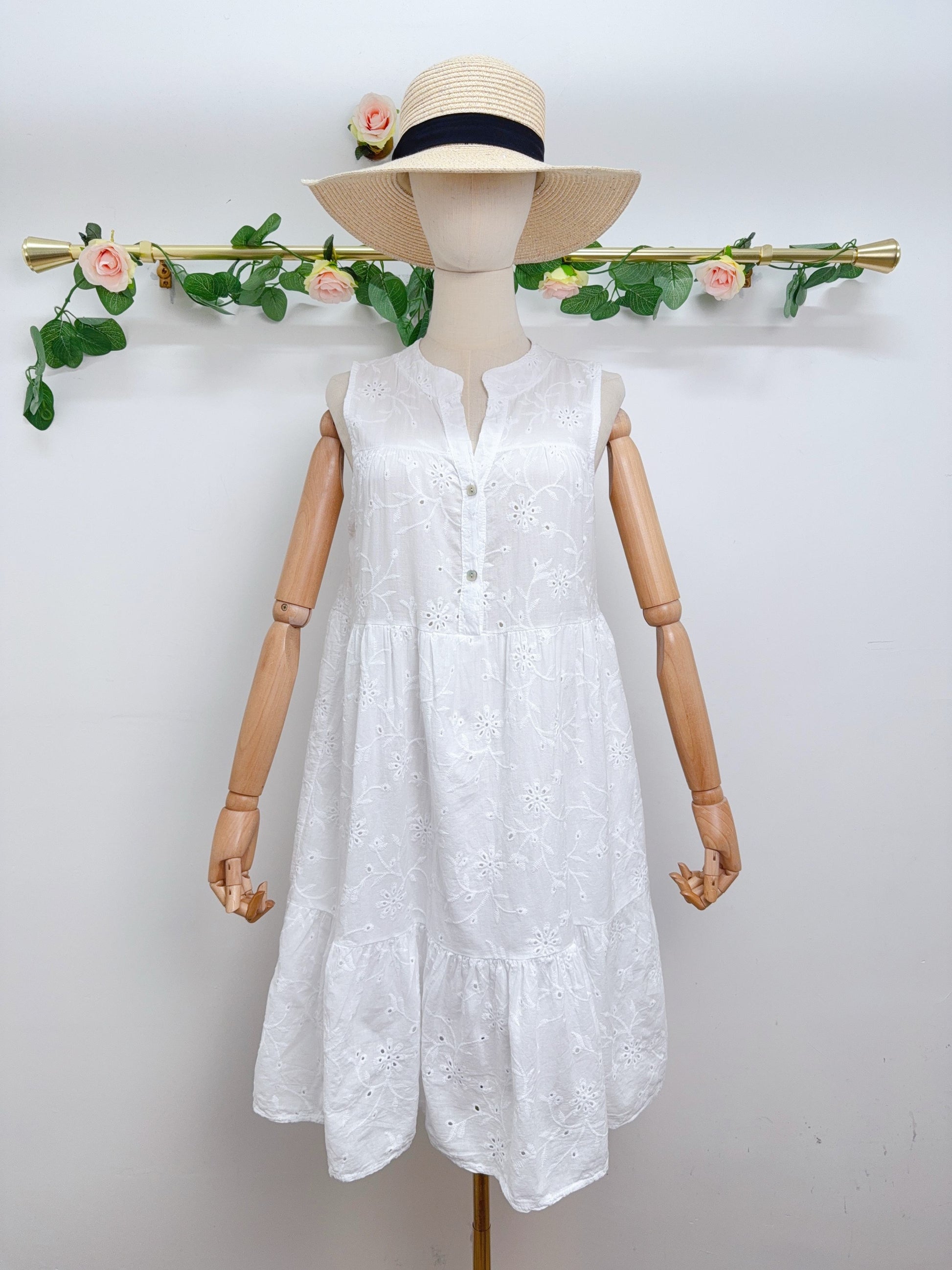 Dieses schöne Kleid Melany besteht aus 100% Baumwolle und hat ein Unterkleid für zusätzlichen Komfort. Die Stickereien und Knöpfe an der Brust verleihen dem Kleid eine besondere Note. Es ist in den Größen 36 bis 40 tragbar. Ein bequemes und stilvolles Kleid für jeden Anlass.