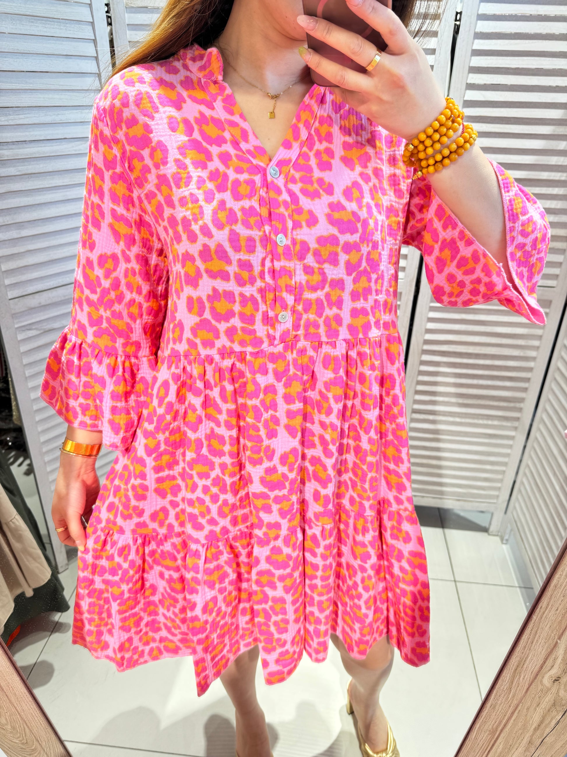 Dieses Kleid ist aus 100% Baumwolle gefertigt und bietet somit einen angenehmen Tragekomfort. Es ist in den Größen 36 bis 44 tragbar und eignet sich somit für verschiedene Körpergrößen. Das Modell ist 1,65 m groß, was zeigt, wie gut es sich an unterschiedliche Figuren anpasst.