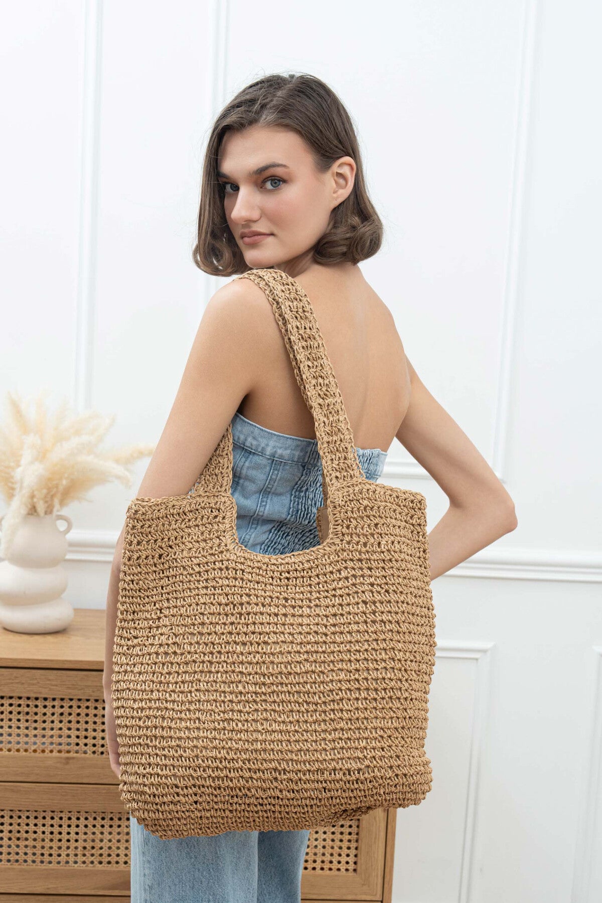 Schultertasche geflochtene Handtasche