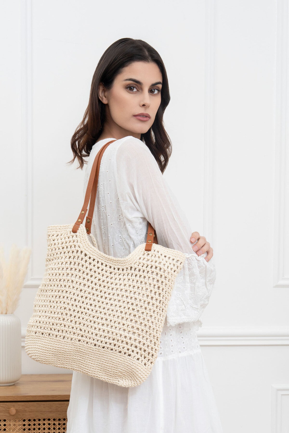 Schultertasche, zweifarbige geflochtene Strandtasche