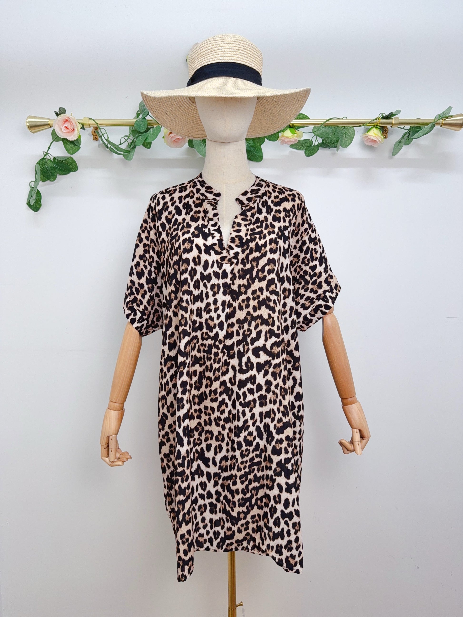 Das Sommerkleid Leo Viscose ist ideal für den warmen Tag. Der angenehme Stoff bietet höchsten Tragekomfort. Bei einer Größe von 1,65 m reicht das Kleid bis übers Knie und passt perfekt für Größen 36-44. Ein Muss für alle, die modisch und bequem gekleidet sein wollen.