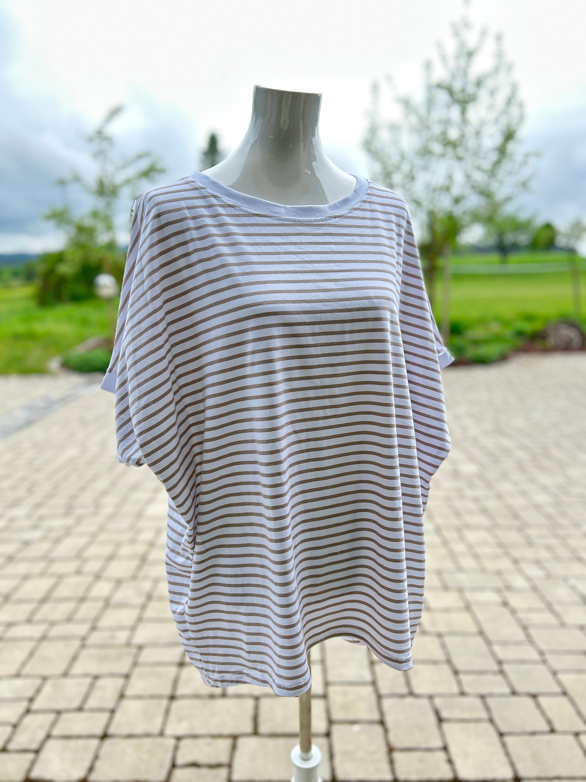 T-Shirt Streifen weiß beige